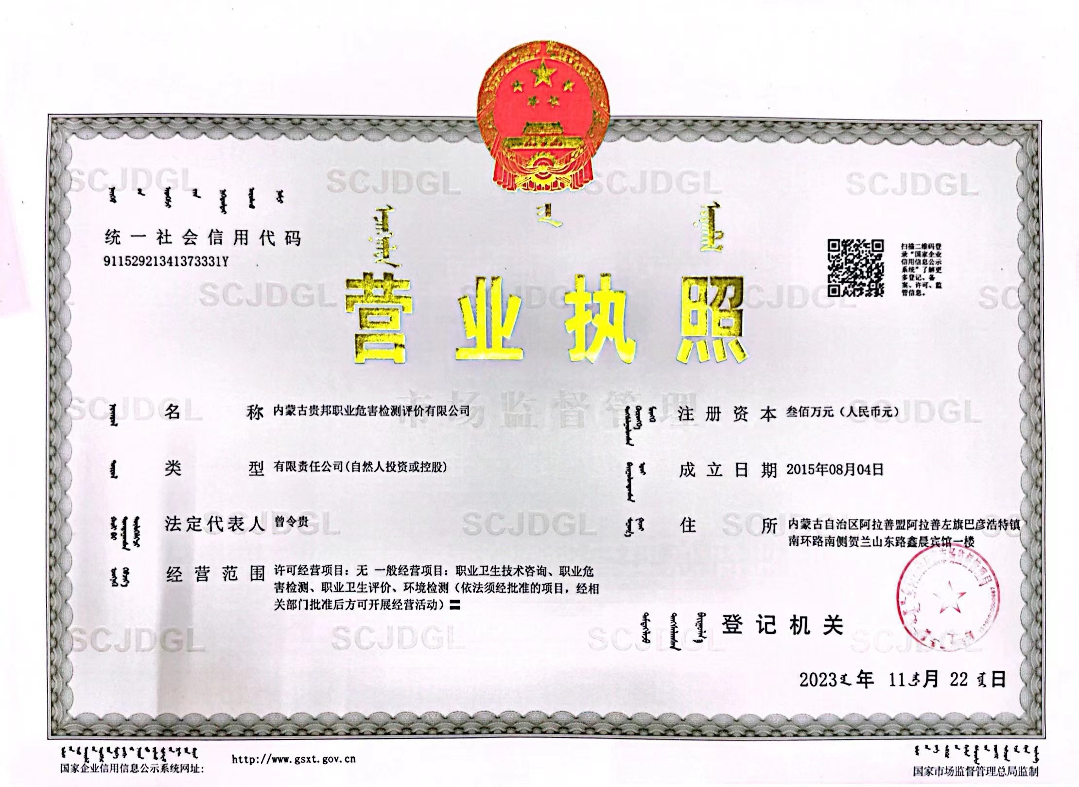 內(nèi)蒙古貴邦職業(yè)危害檢測評價有限公司(www.zuojiazhuangzhiyuan.com)版權(quán)所有 地址:阿拉善盟阿拉善左旗賀蘭山東路加氣站南側(cè)鑫晨賓館一樓 24小時熱線:18947252199 蒙ICP備:蒙ICP備21006705號-1 公安備案號:50011802010212